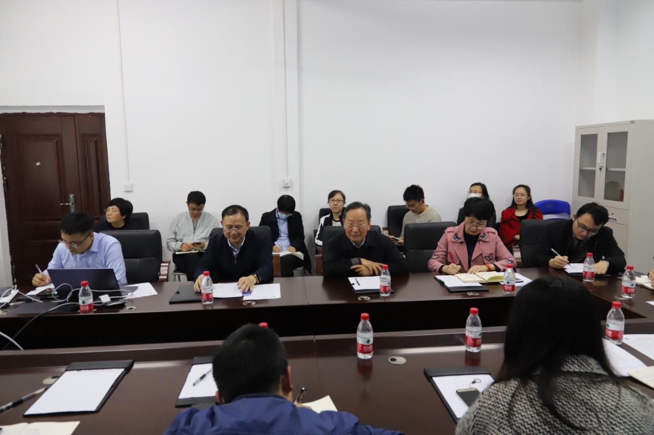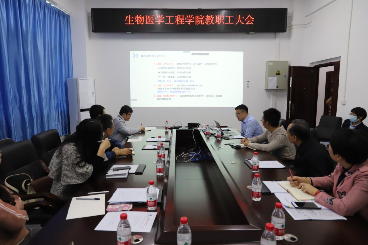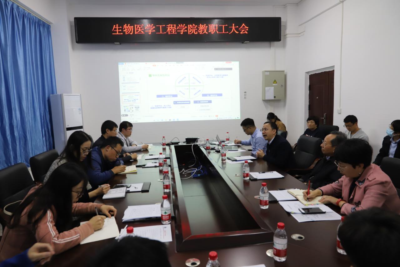 会议室召开全院教职工大会。会议由院长刘谦主持,校长骆清铭,荣誉教授叶朝辉,全院教职工,以及参加线上会议的客座教授参加。