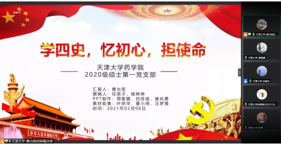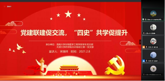 与天津大学药学院于2月8日晚7:30,以线上的方式共同举办《党建联建促交流,“四史”共学促提升》主题分享会。本次活动由包养网