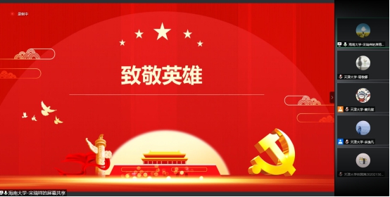 本次活动围绕“英雄、复兴、创新、信念”展开主题分享,由天大和海大的同学分组展示自己的学习成果。