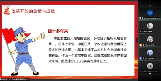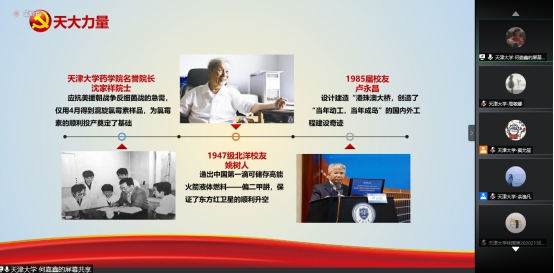 天津大学药学院窦允笙同志从“社会主义发展史” “信念点亮社会主义道路”和“药学人的使命与担当”三个方面带我们展开信念这一主题的学习。