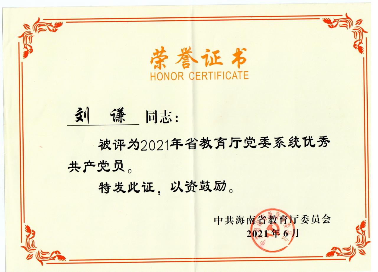海南省教育厅党委系统优秀党员:刘谦