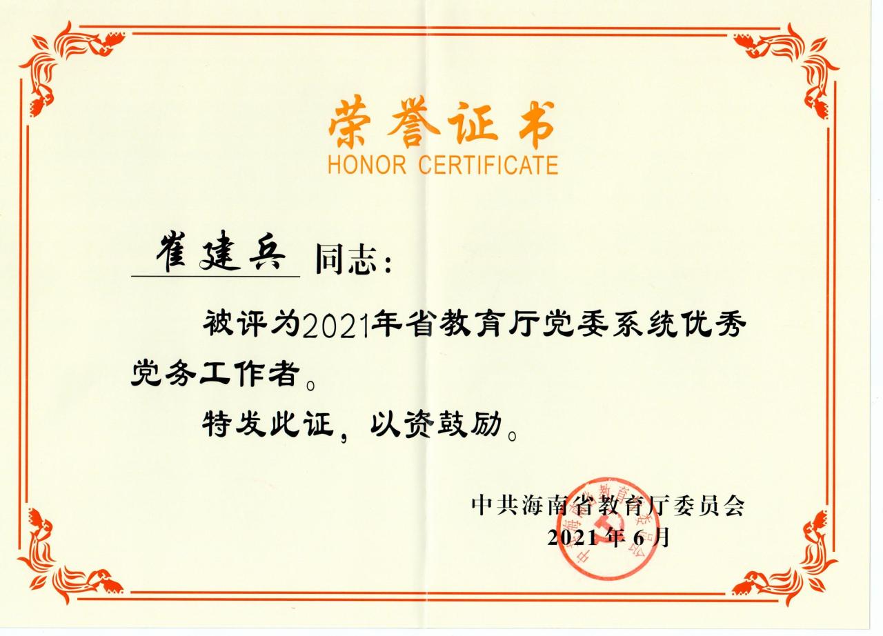海南省教育厅党委系统优秀党务工作者:崔建兵