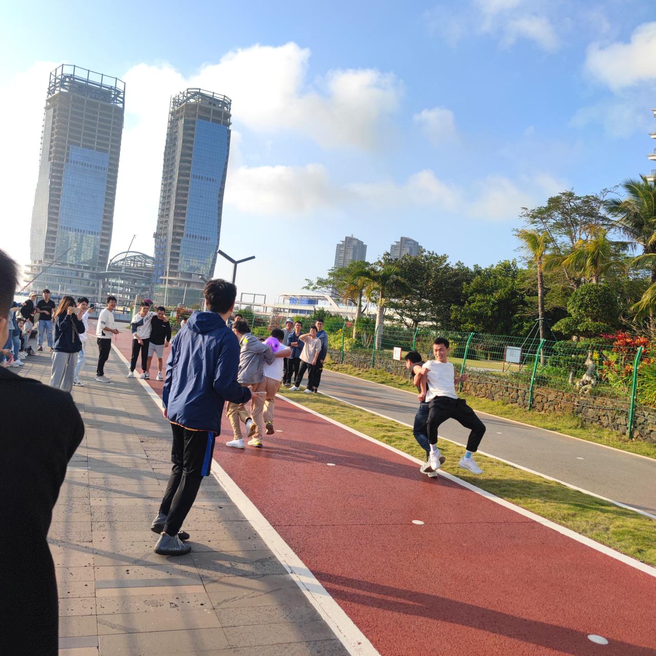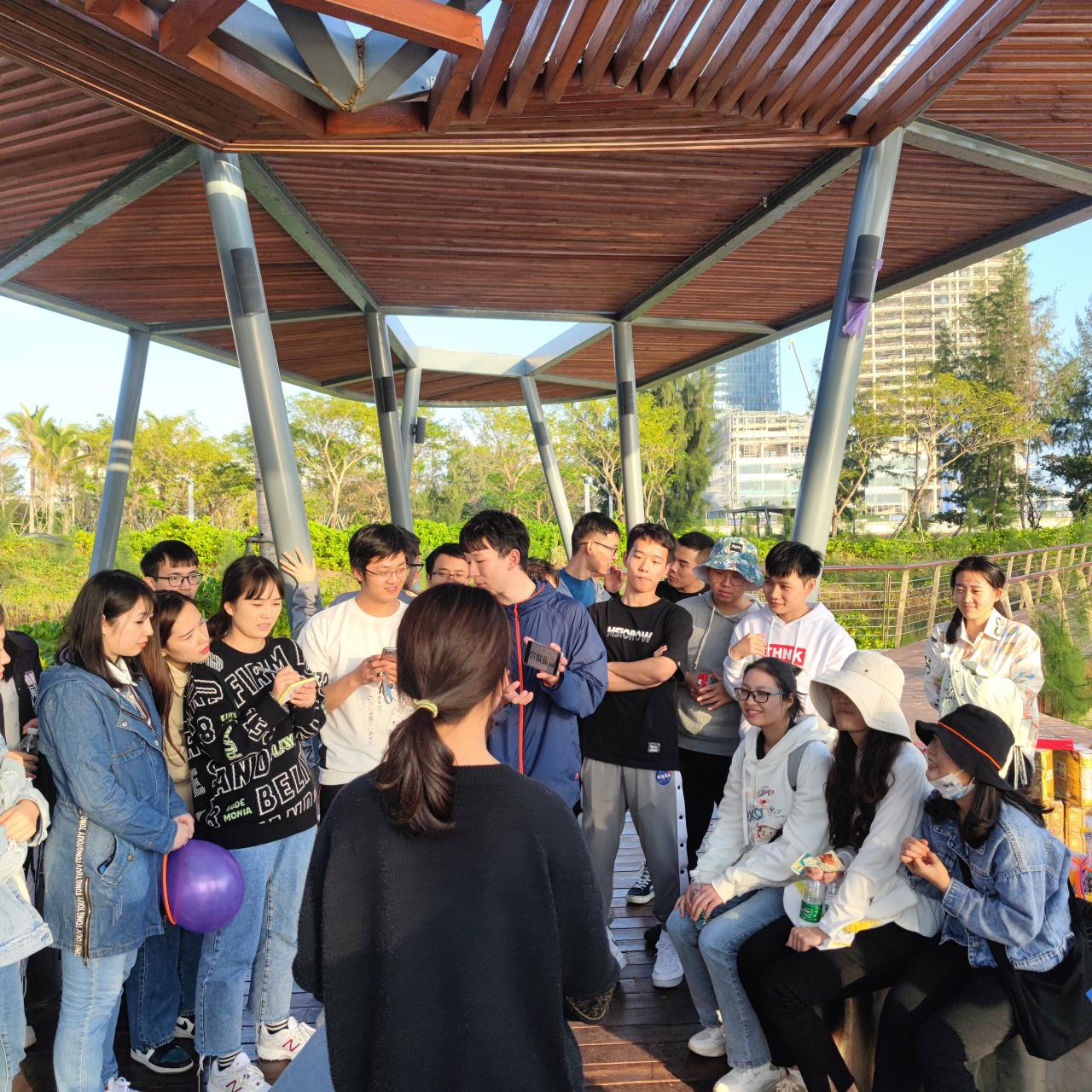 新南门→世纪大桥→泄湖木栈道设置,在每个休息点还安排有“接力比赛” 和“你比我猜”等互动小游戏,以各队积分发放活动奖励。伴随着优美的海景,队伍浩浩荡荡地出发了。大家一路欢歌笑语,在风光旖旎的海口湾盛景中相伴而行,尽情挥洒欢乐与激情,沿途拍照记录魅力风景与美好时刻。在向终点进发的路上,师生们时而被游戏关卡绊住脚步,面露愁容,苦苦思索“获胜秘籍”,时而突破障碍,欢呼雀跃,冲向胜利的终点。无论结果如何,在整个活动中,大家始终热情高涨,积极参与。终点上,根据积分宣布了比赛结果,并进行颁奖仪式。至此,徒步活动圆满结束!