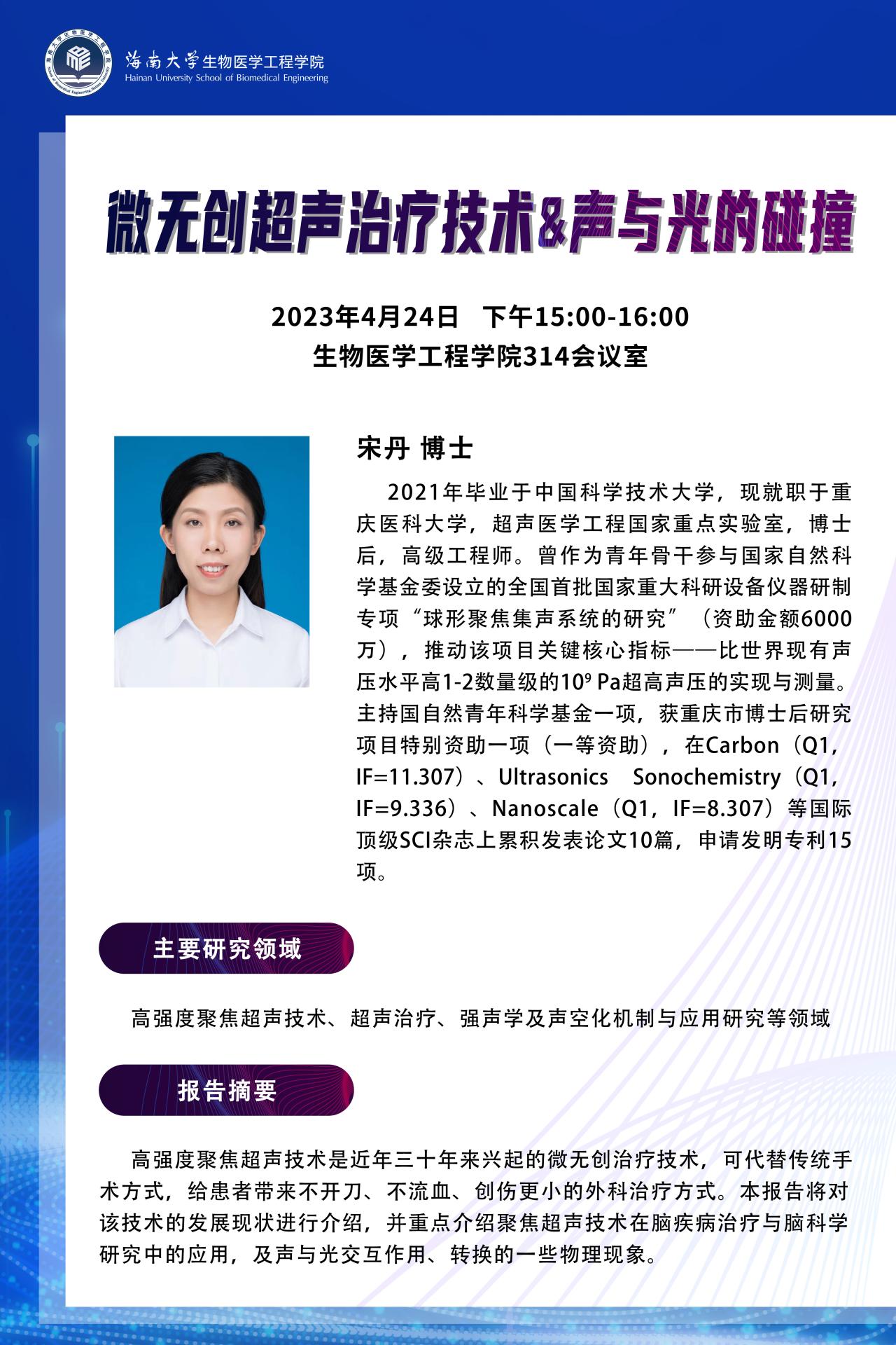 包养网 学者论坛第三期——宋丹“微创超声治疗技术&声与光的碰撞”
