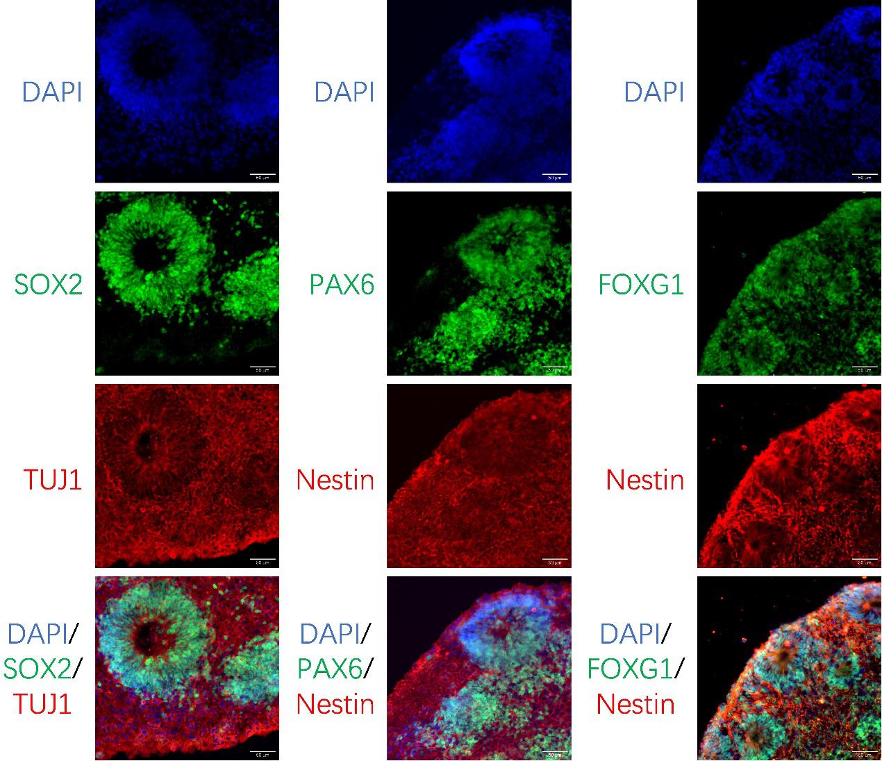 大脑皮层类器官组织切片免疫荧光染色成像照片